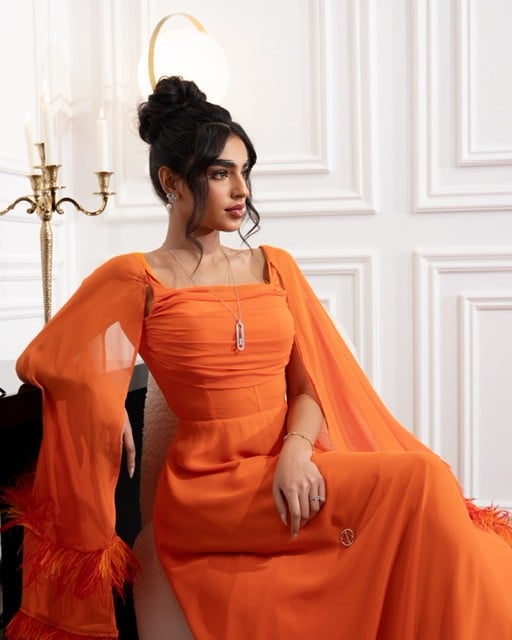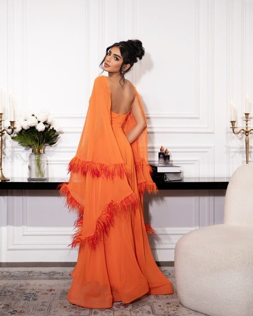 This orange dress is your best and standout choice for those seeking a bold and attention-grabbing look for special occasions.